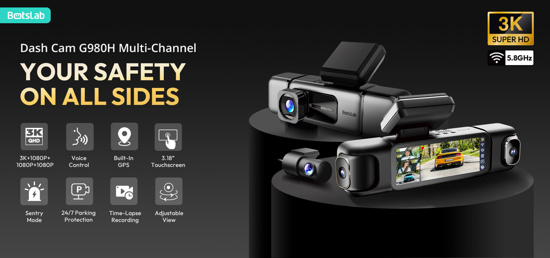 Botslab G980H Multi-Channel 4 Cameras Dash Cam