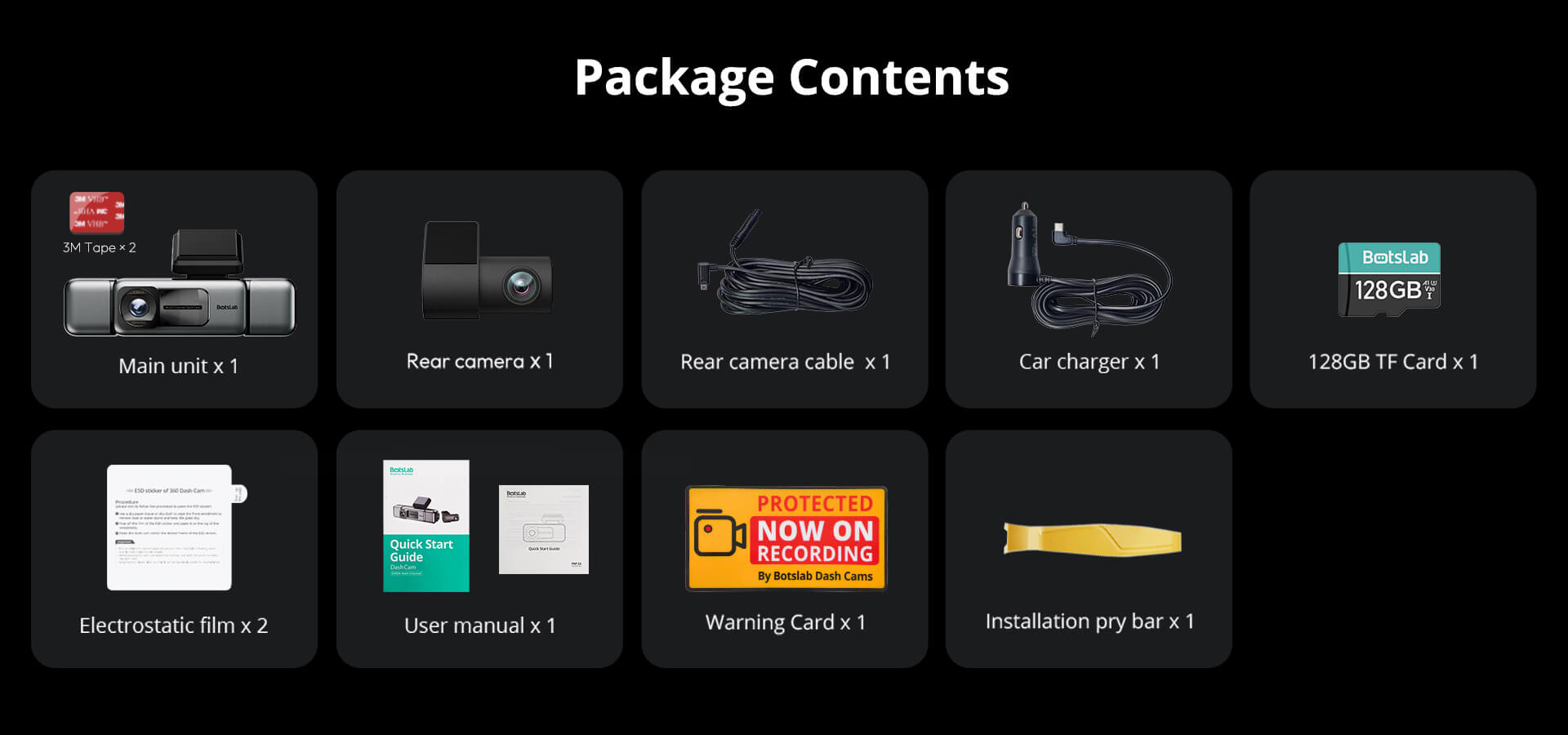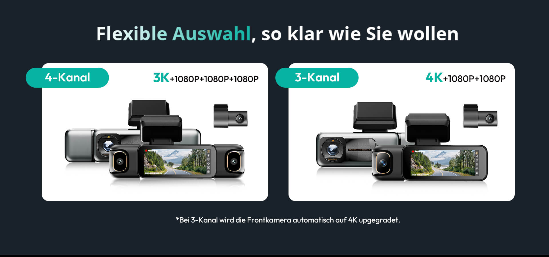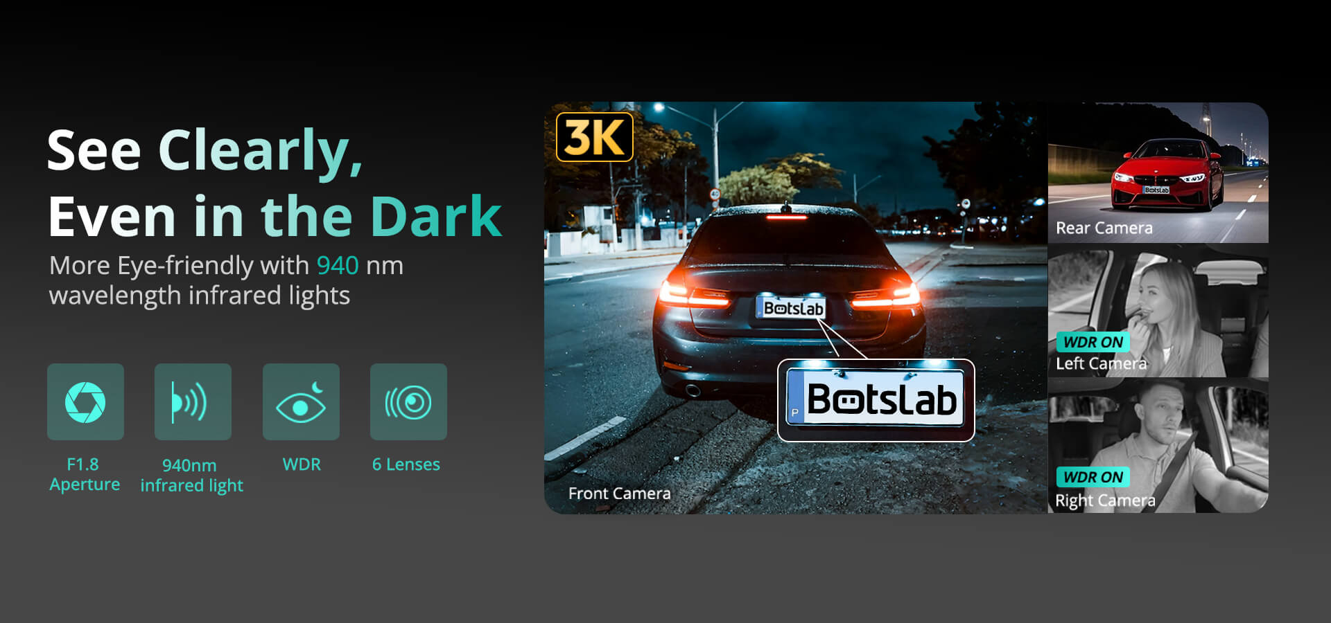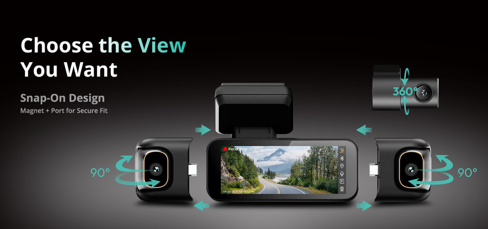 | True 360° Recording | Front (3K) + Rear/Left/Right (1080P) |