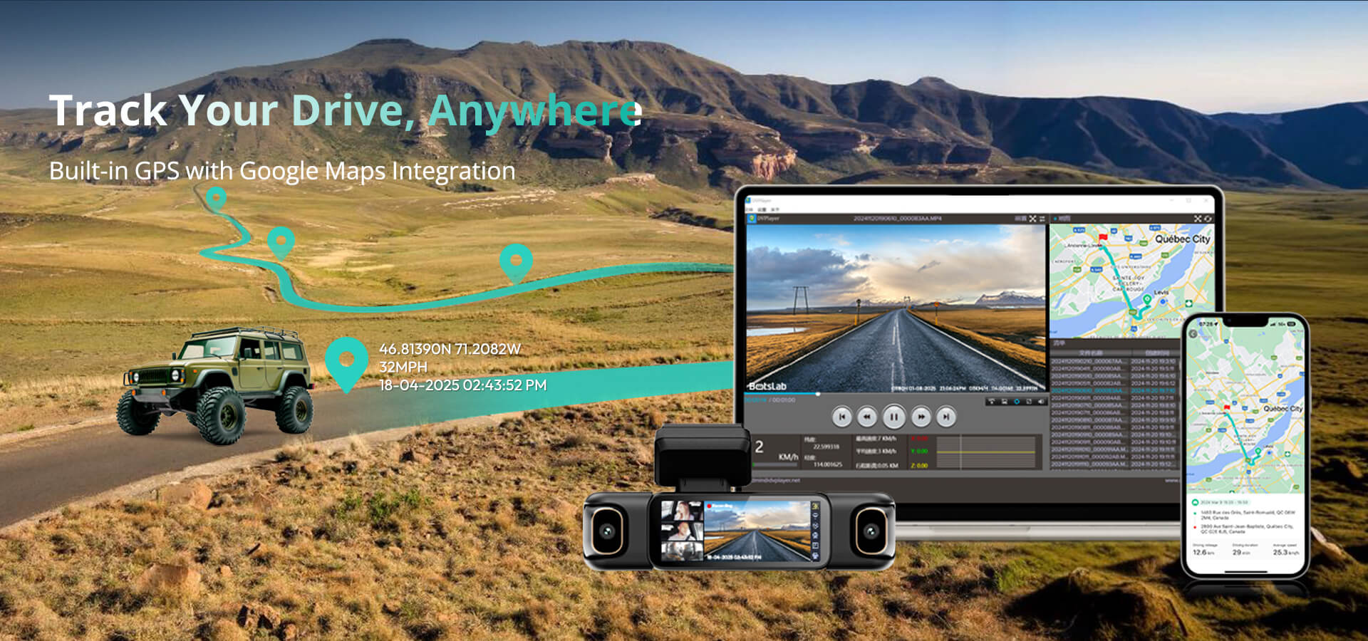 | Built-in GPS | Google Maps Sync (App + PC) |