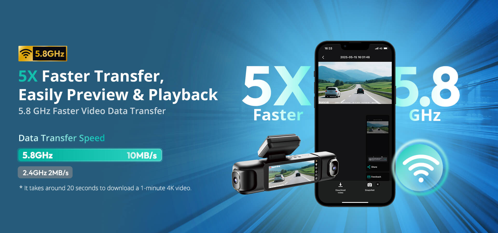 | Wi-Fi Transfer Speed | 5X Faster with 5.8 GHz |