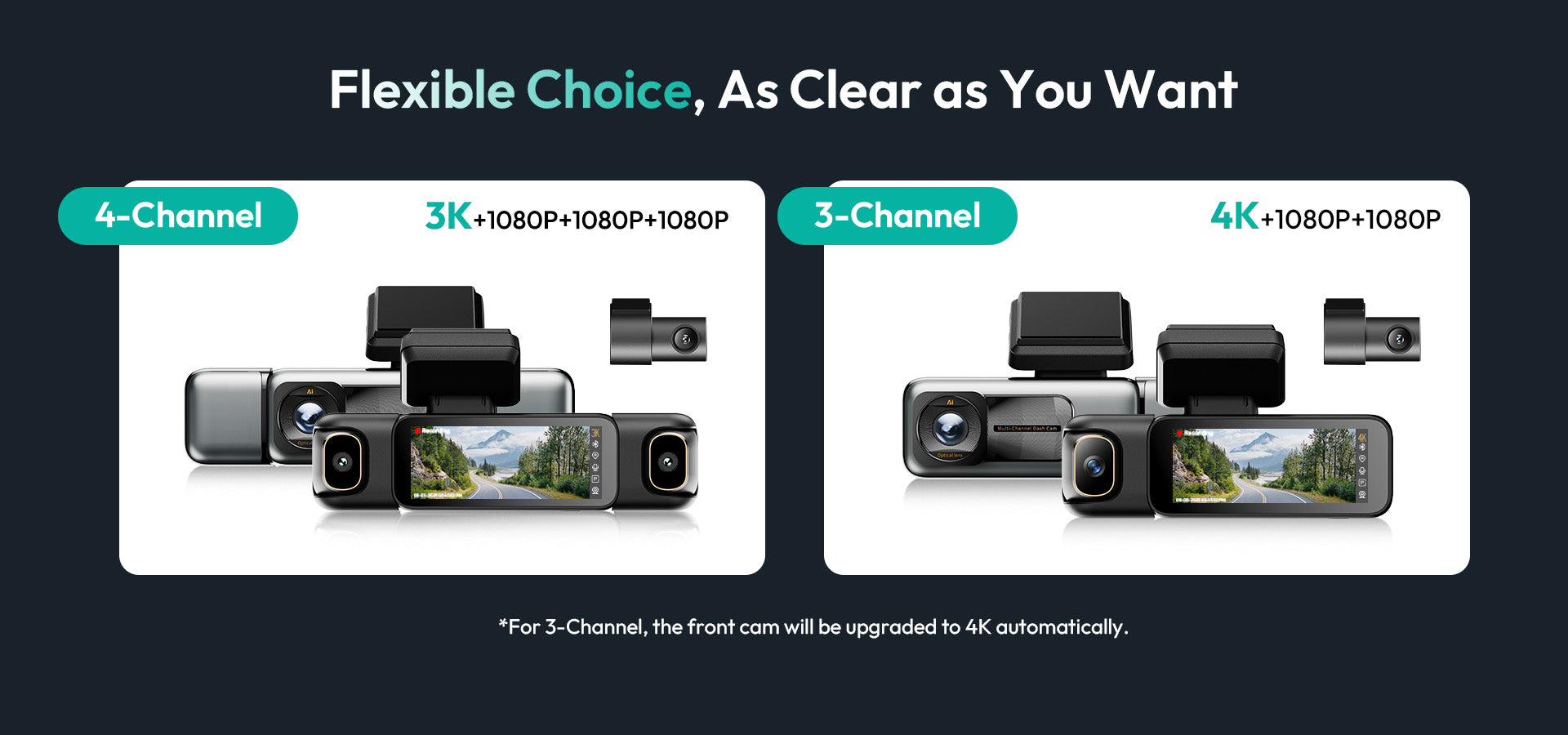 | True 360° Recording | Front (3K) + Rear / Left / Right (1080P) |