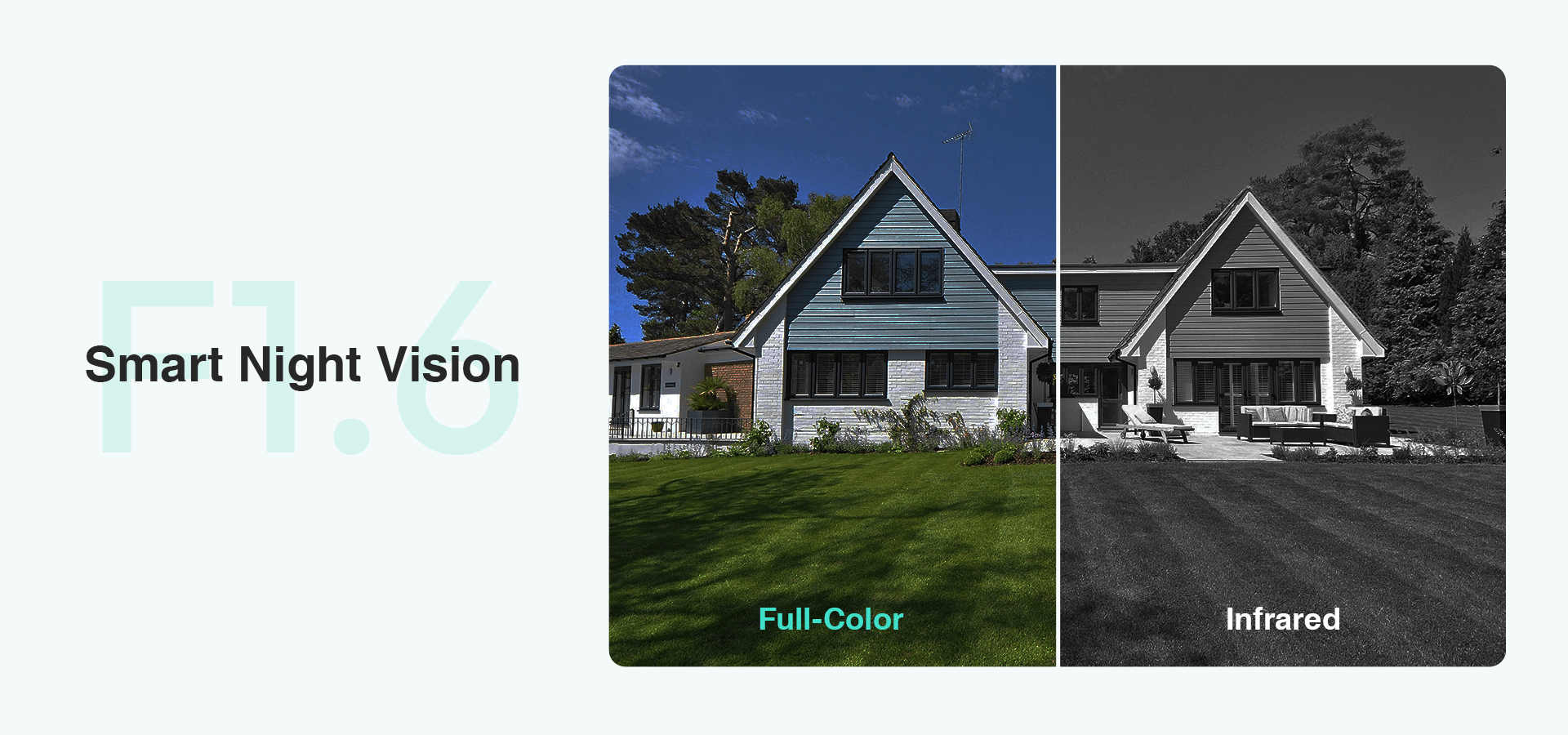 | Night Vision | Full-color night vision & infrared mode with F1.6 aperture |