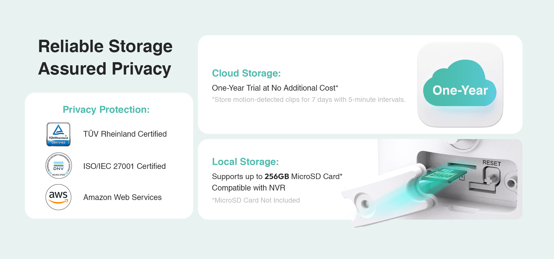 | Pan, Tilt & Hybrid Zoom | 360° horizontal • 113° vertical • Up to 16× digital zoom |