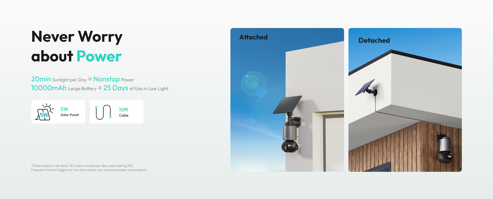 Typically, when fully charged, the W510 can meet usage needs for 15-25 days, and when used with a solar panel, 30 minutes to 1 hour of good sunlight daily is enough to cover a day's power consumption. If personnel frequently pass by or there are interference sources, the motion sensor may activate the device too often, leading to excessive power consumption. You can adjust the sensor sensitivity settings or the camera's operating mode based on actual usage needs.