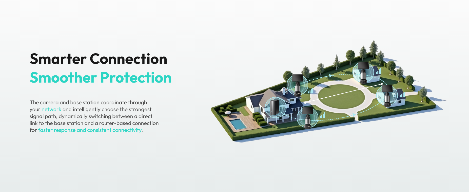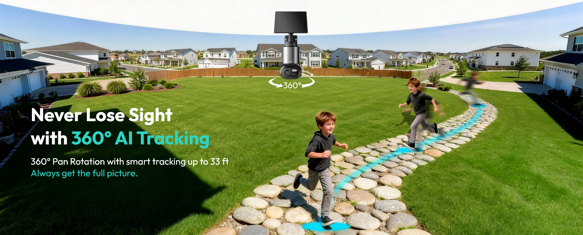 Multiple cameras work together to intelligently track movement and monitor events seamlessly.