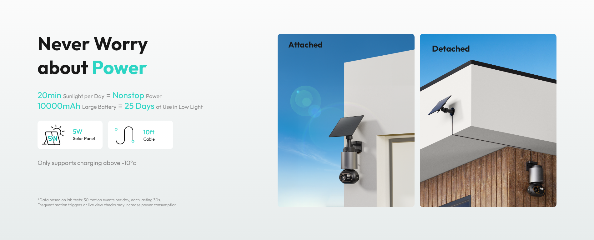 5W solar panel supports attached or detached installation with an adjustable angle for optimal charging.