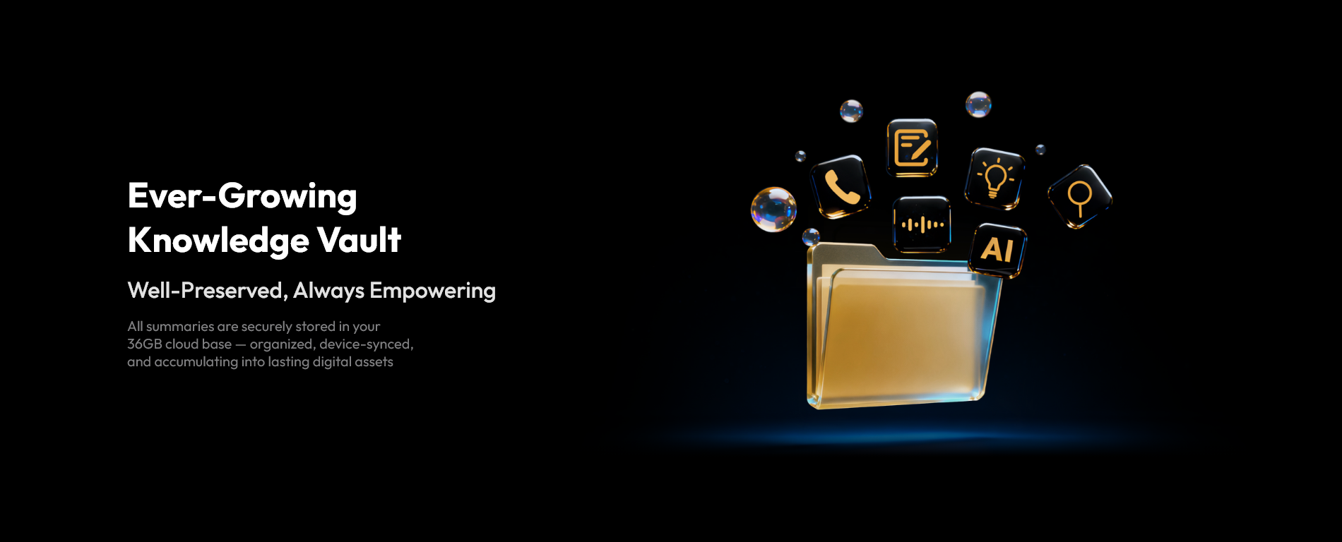 You can ask questions based on all your past meeting recordings and uploaded files. AI can summarize recent meetings, generate weekly reports, and create to-do lists. Your 36GB cloud knowledge base uses RAG technology for precise, instant retrieval of any historical detail.